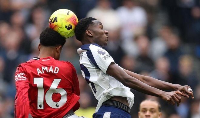曼聯(lián)開(kāi)場(chǎng)就出現(xiàn)失誤,拉門(mén)斯接回傳球竟然把球漏過(guò)去,幸好他的站位比較偏,皮球滾出底線,而不是滾進(jìn)球門(mén)。阿莫林被嚇了一跳。雙方都踢得比較謹(jǐn)慎,創(chuàng)造出的機(jī)會(huì)很少。但曼聯(lián)把握住了為數(shù)不多的機(jī)會(huì),在上半場(chǎng)打進(jìn)唯一進(jìn)球。阿馬德傳中球助攻姆伯莫頭球破門(mén)。作為10月英超月度最佳球員,姆伯莫延續(xù)了此前出色的狀態(tài),幫助曼聯(lián)取得領(lǐng)先。半場(chǎng)結(jié)束,曼聯(lián)1-0熱刺。